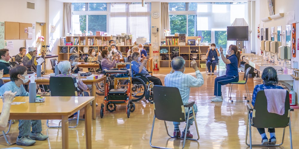 介護予防運動や口腔体操、楽しいレクリエーションを通じ、心身の諸機能の維持回復をお手伝い致します。